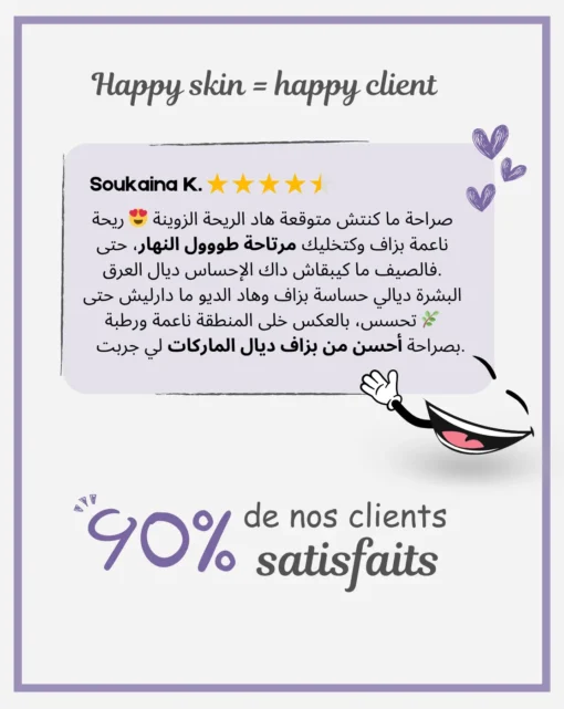 • Lavande : connue pour ses vertus apaisantes et purifiantes, elle calme la peau, réduit les irritations et procure une sensation de bien-être durable. Son parfum délicat et floral aide aussi à détendre l’esprit.